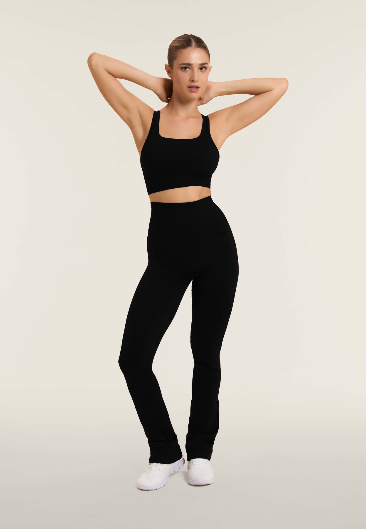 De uitneembare, voorgevormde cups geven extra vorm en ondersteuning, terwijl de nylon jersey stof ademend en duurzaam is — ideaal voor elke workout, van yoga tot fitness.