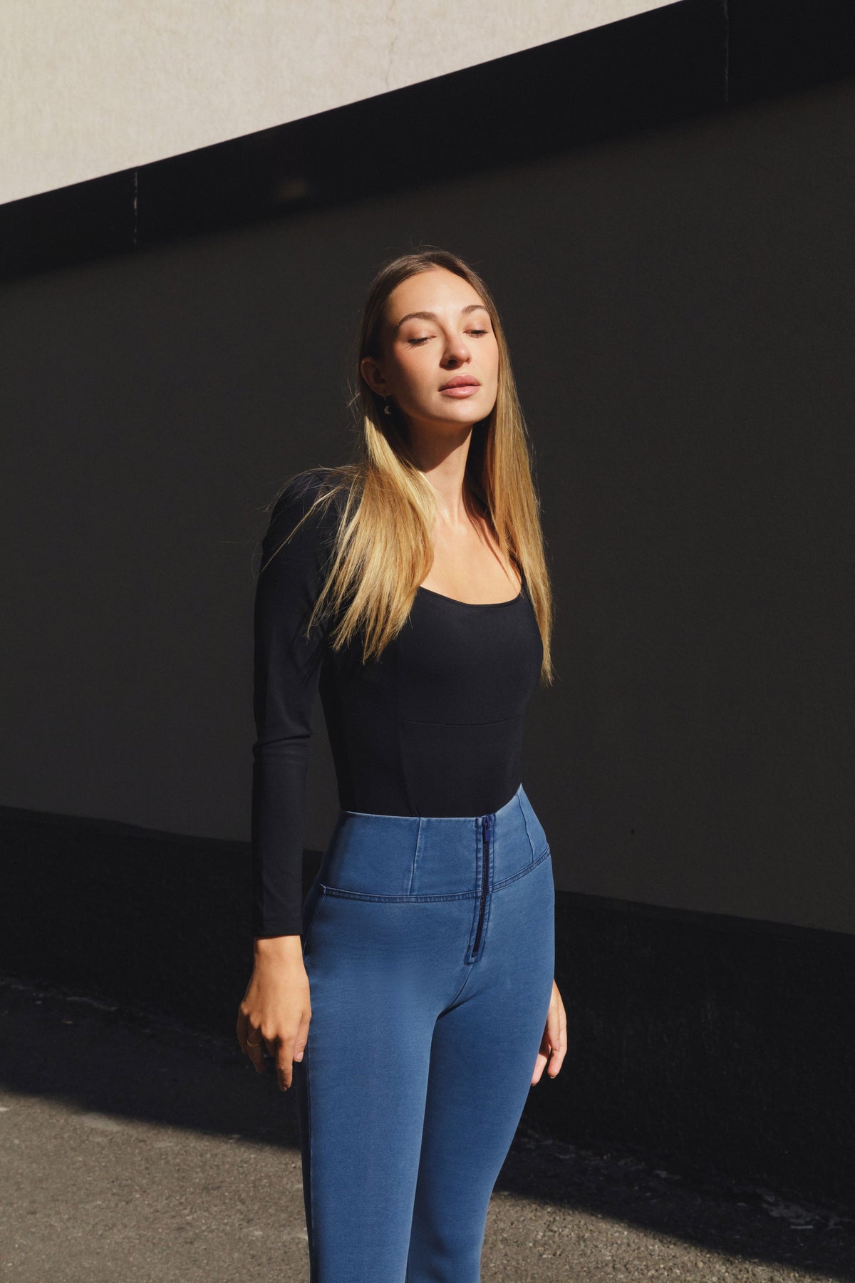 De zachte, stretchy denim-look stof voelt comfortabel aan en beweegt moeiteloos met je mee gedurende de dag. De gepatenteerde WR.UP® technologie lift en vormt je rondingen op een natuurlijke manier, voor een flatterend en zelfverzekerd draagbeeld. Een veelzijdige basic die zowel met sneakers als met hakken perfect tot zijn recht komt.